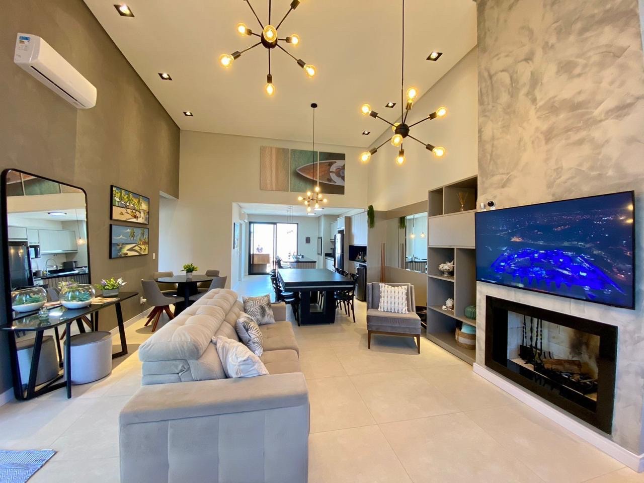Casa térrea com 150m² e apenas 3 anos de uso, oferecendo 03 suítes individuais, lavabo social e vaga para até 03 carros. Possui excelente posição solar norte e frente sem vizinhos, garantindo mais privacidade e iluminação natural. Totalmente mobiliada e decorada, conta com piso em porcelanato, persianas automatizadas, ar-condicionado em todos os ambientes, paisagismo na frente e deck nos fundos. Imobiliária Beach House.